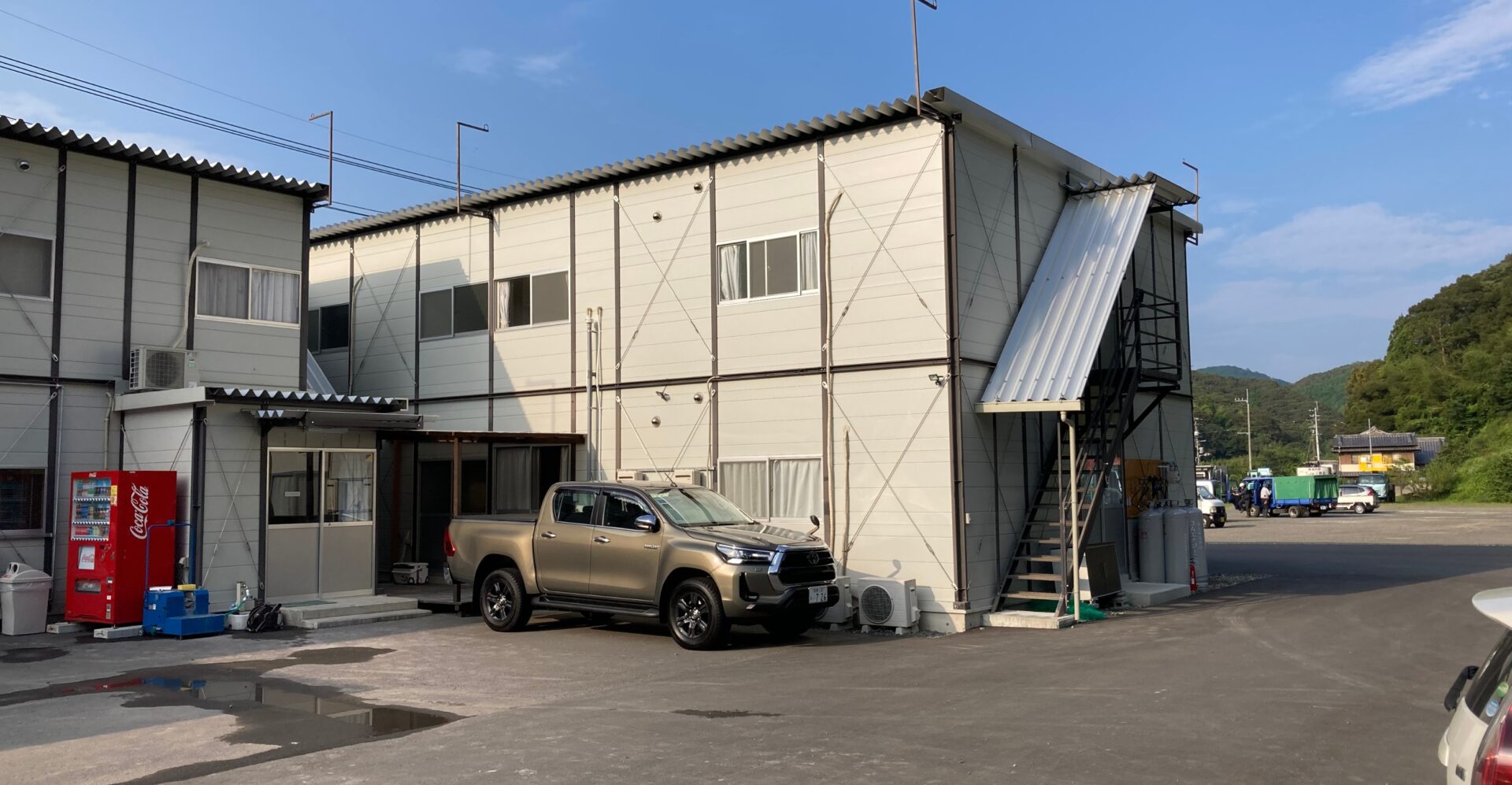 現場事務所になぜか湘南のハイラックス