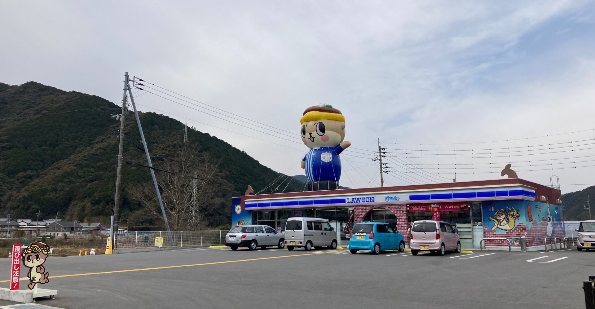 高知空港から現場まで100キロ弱、いつもよっていた休憩ポイント 須崎市のご当地キャラしんじょう君が目立つローソン