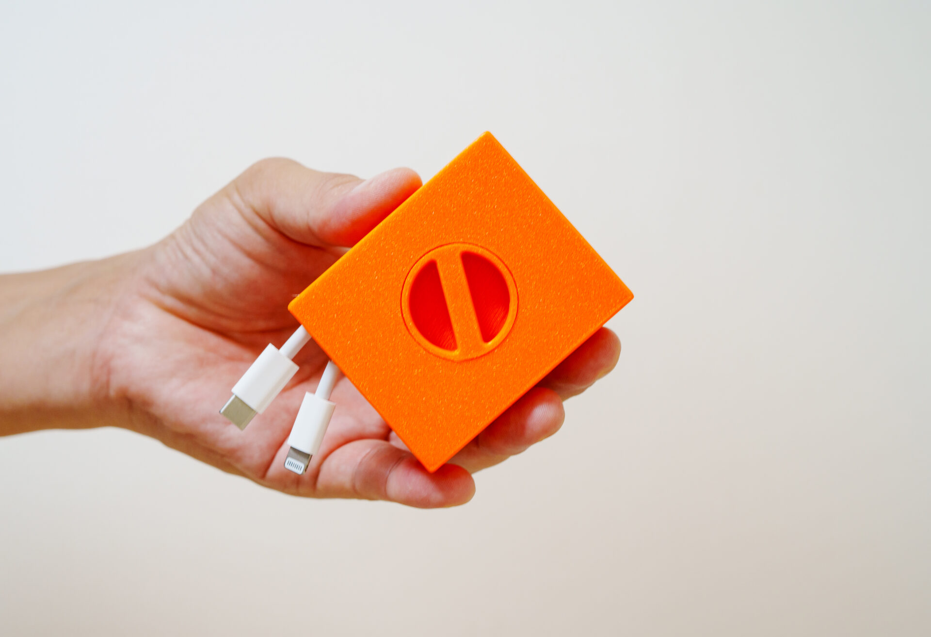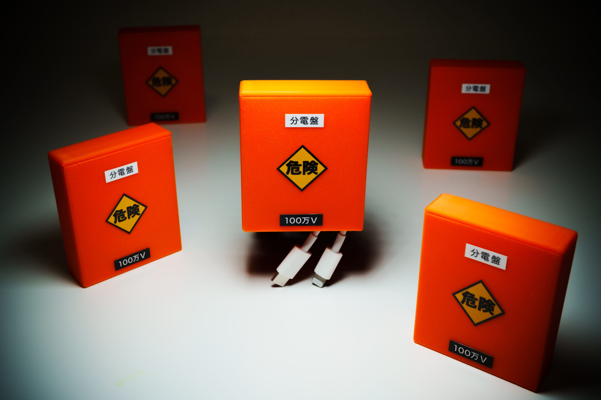 この、建設現場で欠かせない分電盤が携帯電話の充電ケーブル用の収納ツールに変身しました