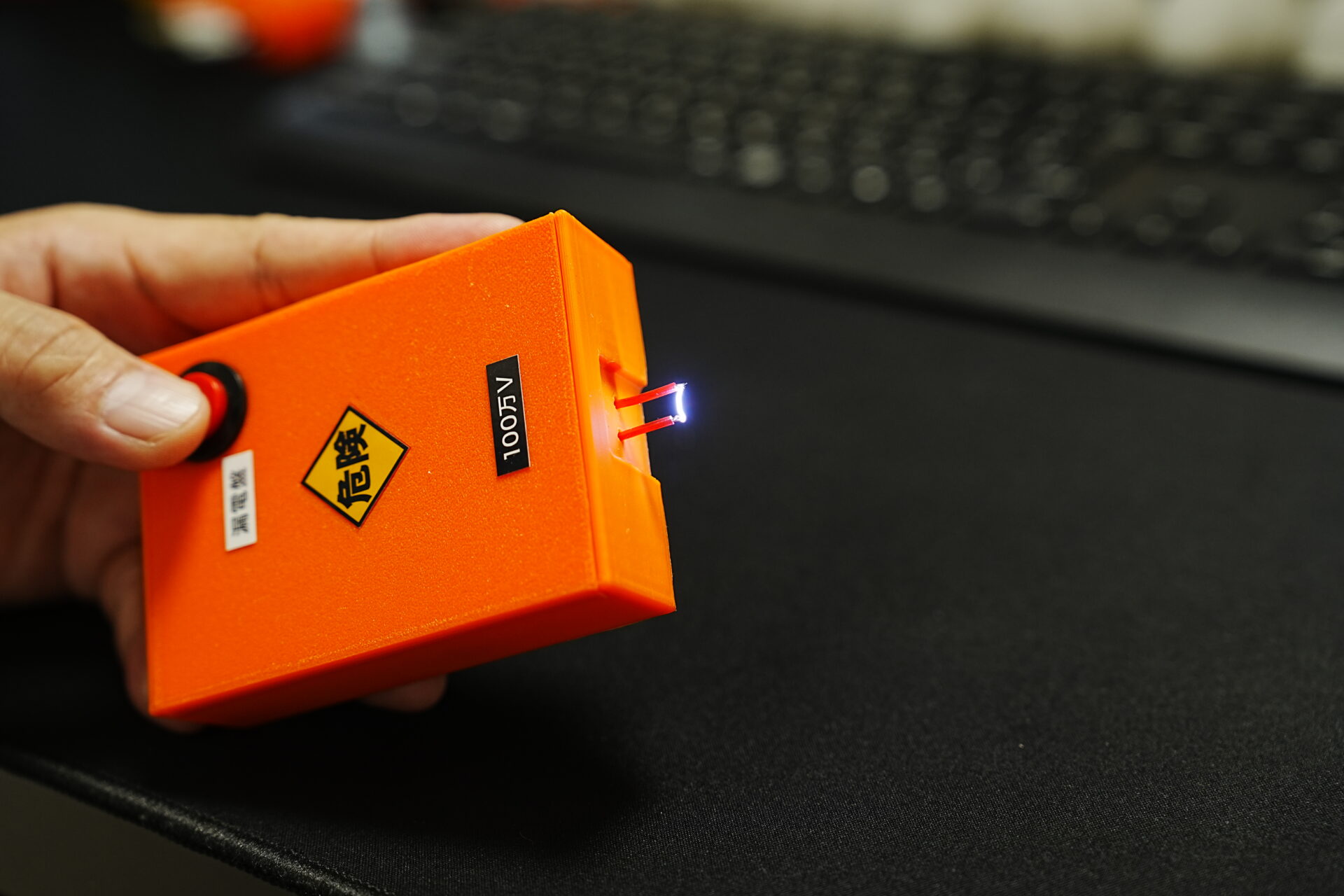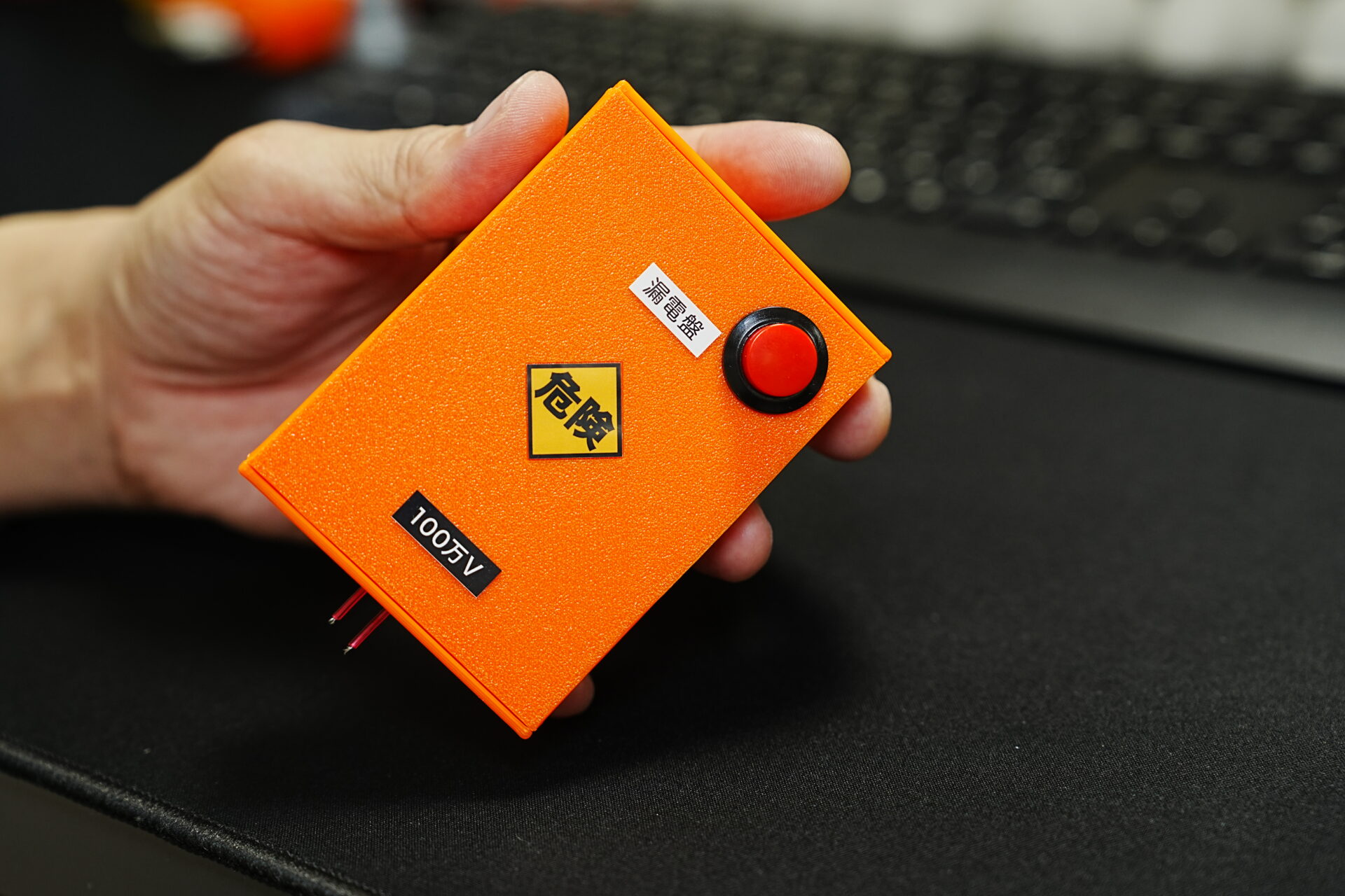 分電盤が漏電します 手のひらサイズのスタンガン? 分電盤コードリールによく似ていますが中身は別物 赤いボタンを押すと本当に電気が発生します 販売は致しませんが ジョークグッズとしてのプレゼントを検討しています
