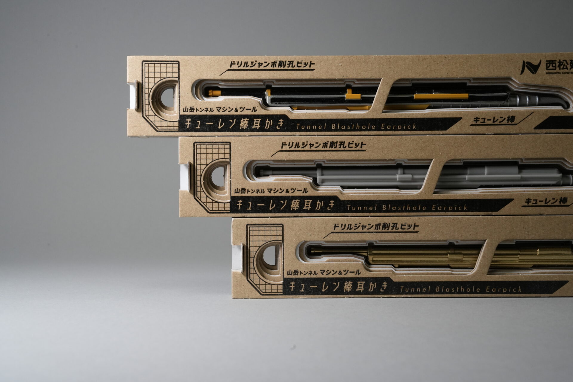 西松建設株式会社様 不破原トンネル啓蒙活動ノベルティー 「キューレン棒耳かき」 現役トンネルマン完全監修 山岳トンネルのマストアイテム キューレン棒とドリルジャンボがFUSIONしました オリジナルカラーでご相談いただけます フック穴はトンネルです 企画 TOKYO.lab 制作 ヨンテンゴデザイン室 監修 西松建設株式会社